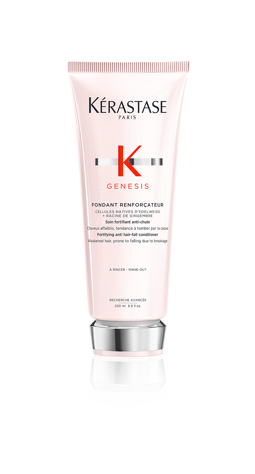 Wzmacniająca odżywka do osłabionych, łamliwych włosów dla zachowania ich gęstości. Kremowa formuła produktu nadaje uczucie lekkości włosów, zapewniając jednocześnie ochronę przed ich łamaniem. Pomaga odbudować strukturę włosa i wzmacnia jego naturalną odporność, aby ograniczyć wypadanie spowodowane łamaniem. Produkt wzbogacony natywnymi komórkami szarotki alpejskiej i korzenia imbiru lekarskiego natychmiast wygładza, wzmacnia i zmiękcza włosy, głęboko je przy tym odżywiając, i nie powoduje wrażenia ich nadmiernej ciężkości. Włosy zyskują jednorodną strukturę, większy połysk i stają się mocniejsze.
